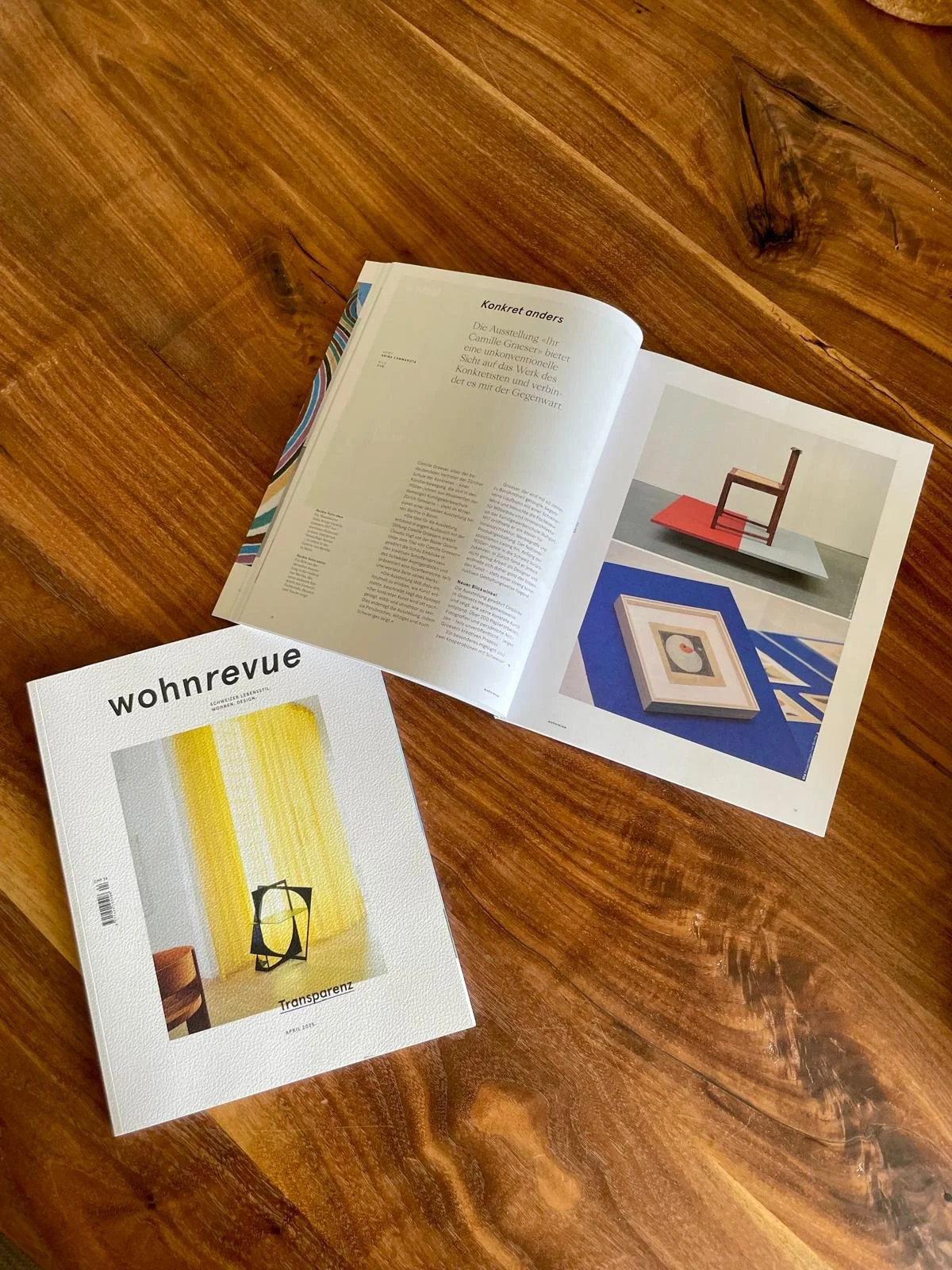 Exhibition view, IHR camille graeser, view of walnut wood chair based on the original by Camille Graeser from 1927, by Bartha, Basel, 2025. Photo: Philipp Hänger / von Bartha
