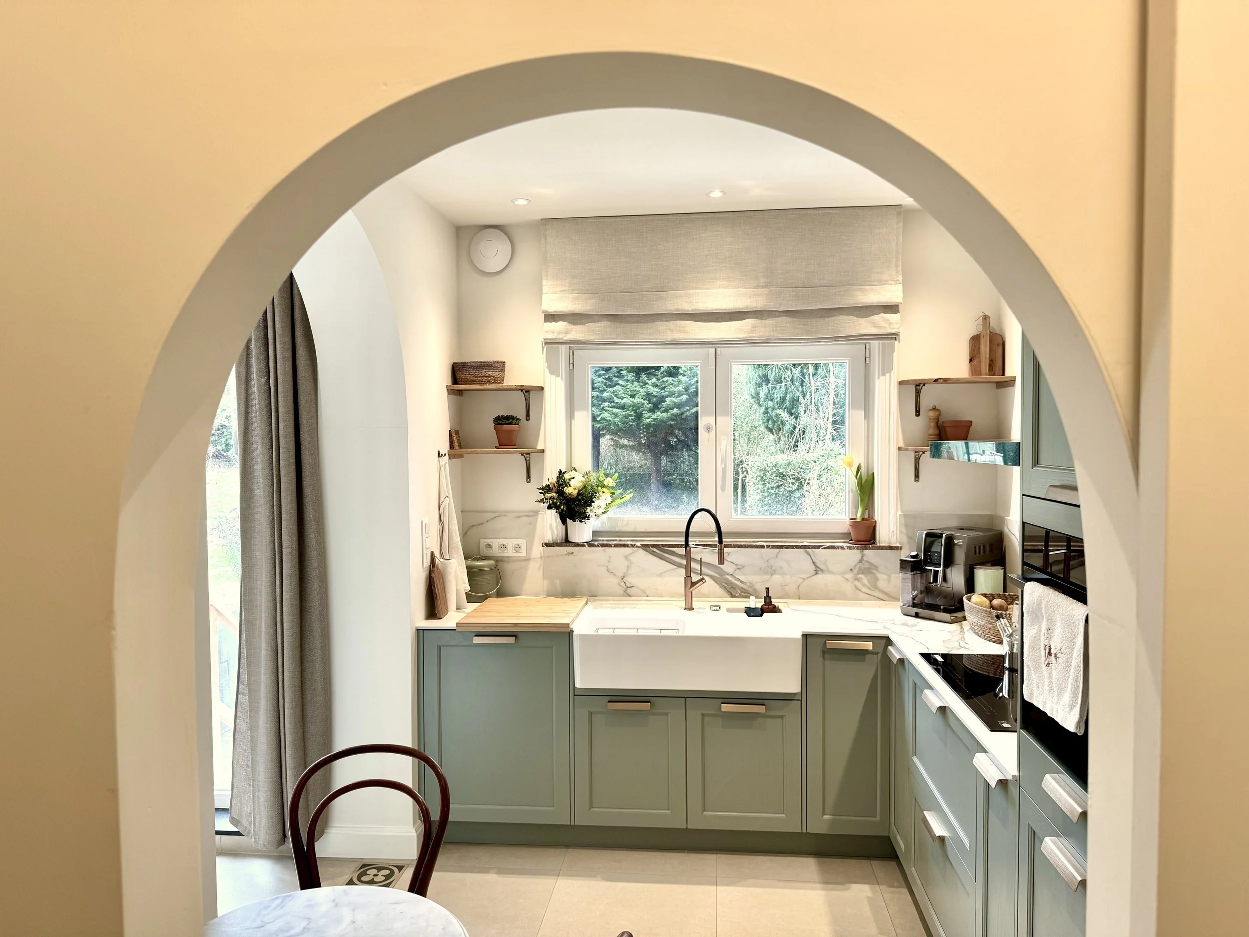 Interior design, for us, begins with use. A space must work before it can be beautiful. It must feel right in daily life, hold up over time, and remain adaptable as needs change. Craftsmanship plays a central role in this approach, bringing precision and a respect for materials. We work with what is already there whenever possible. Existing floors, proportions, and details are treated as resources, not obstacles. When new elements are added, they are designed to last, to be repaired, and to age well. This way of working is closely tied to principles of the circular economy: building less, choosing better, and avoiding what does not serve the space in the long run.